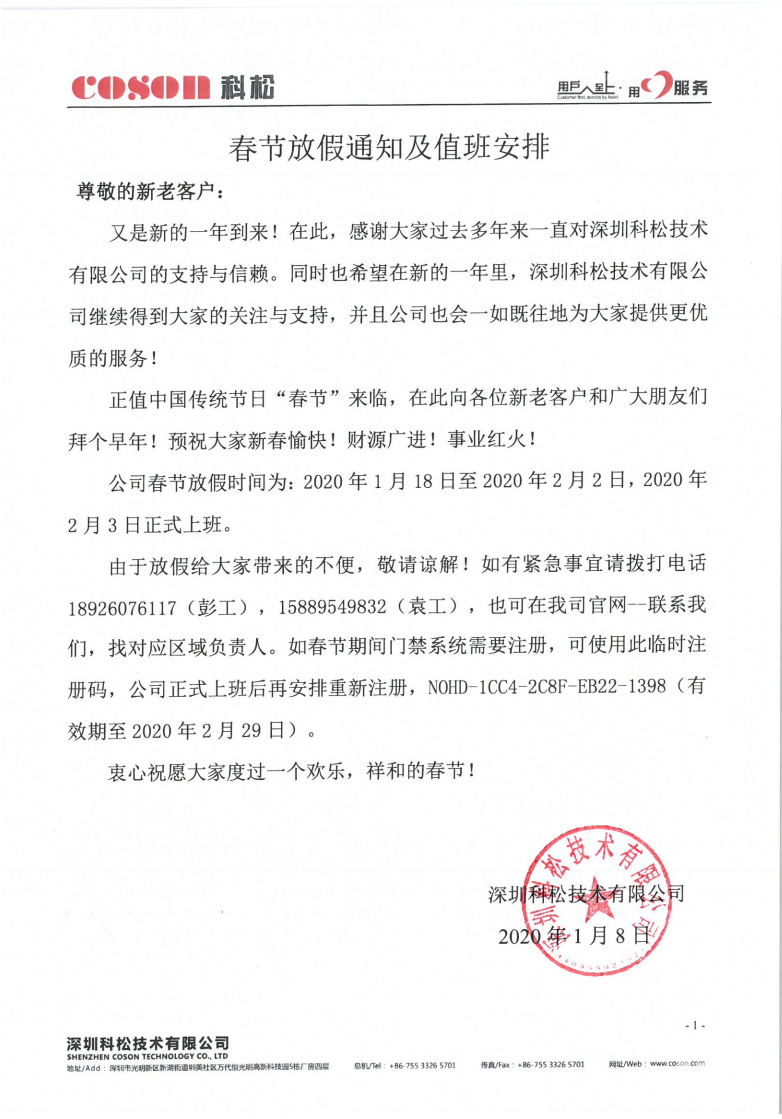 尊敬的新老客戶(hù):感恩您們這些年來(lái)對科松的認同、支持和信賴(lài),在今后的歲月里,希望能夠繼續得到您們的信任、關(guān)心與支持,歡迎您......